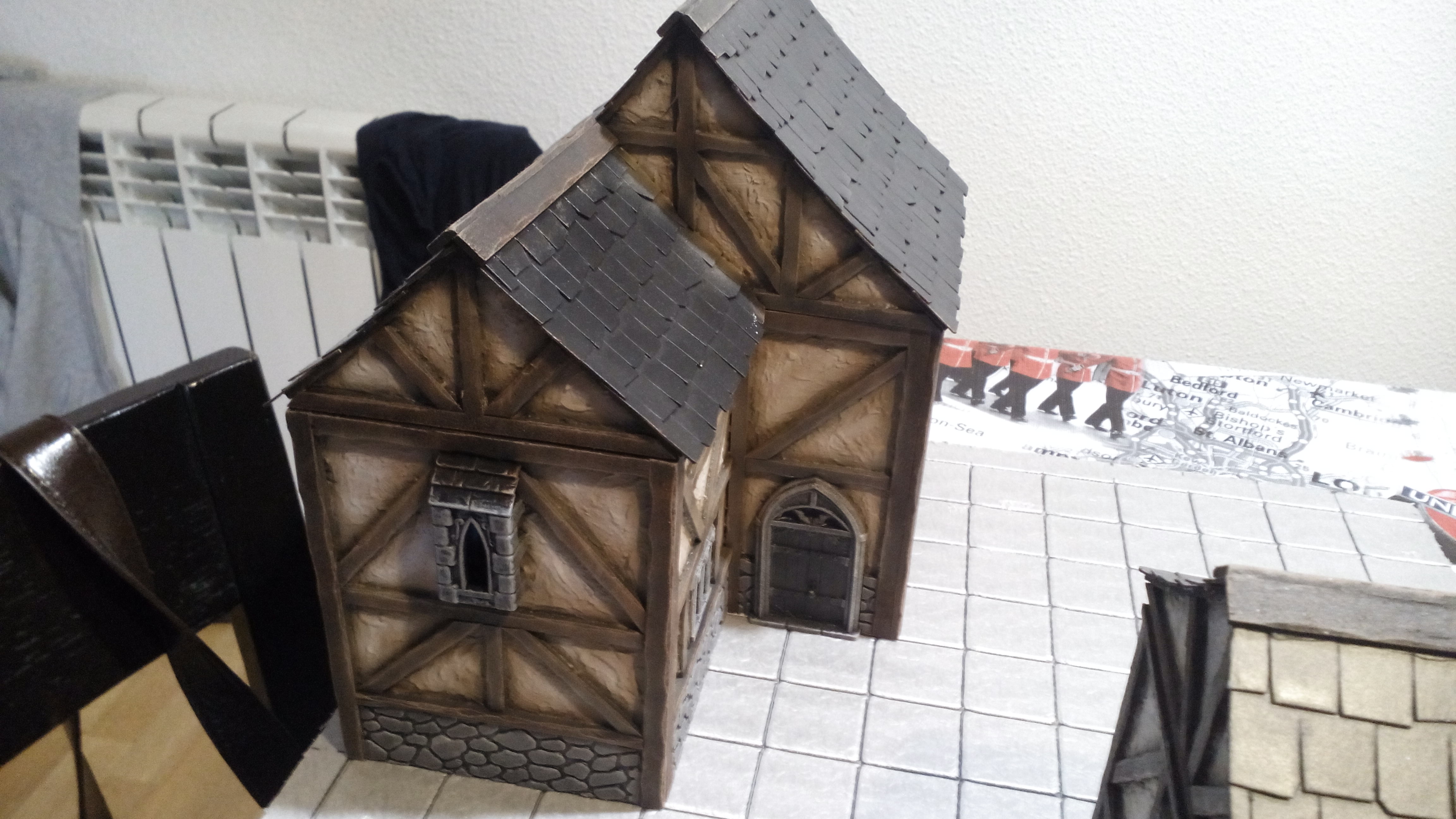 Ahora viene la parte más divertida del diseño de casas medievales. Las características Vigas de madera que recorren la superficie de las fachadas. Para documentarme, estuve viendo fotos de casas medievales y de cómo se construían, lo que me vino muy bien para hacerme una idea de la cantidad de piezas que tendría que fabricar.